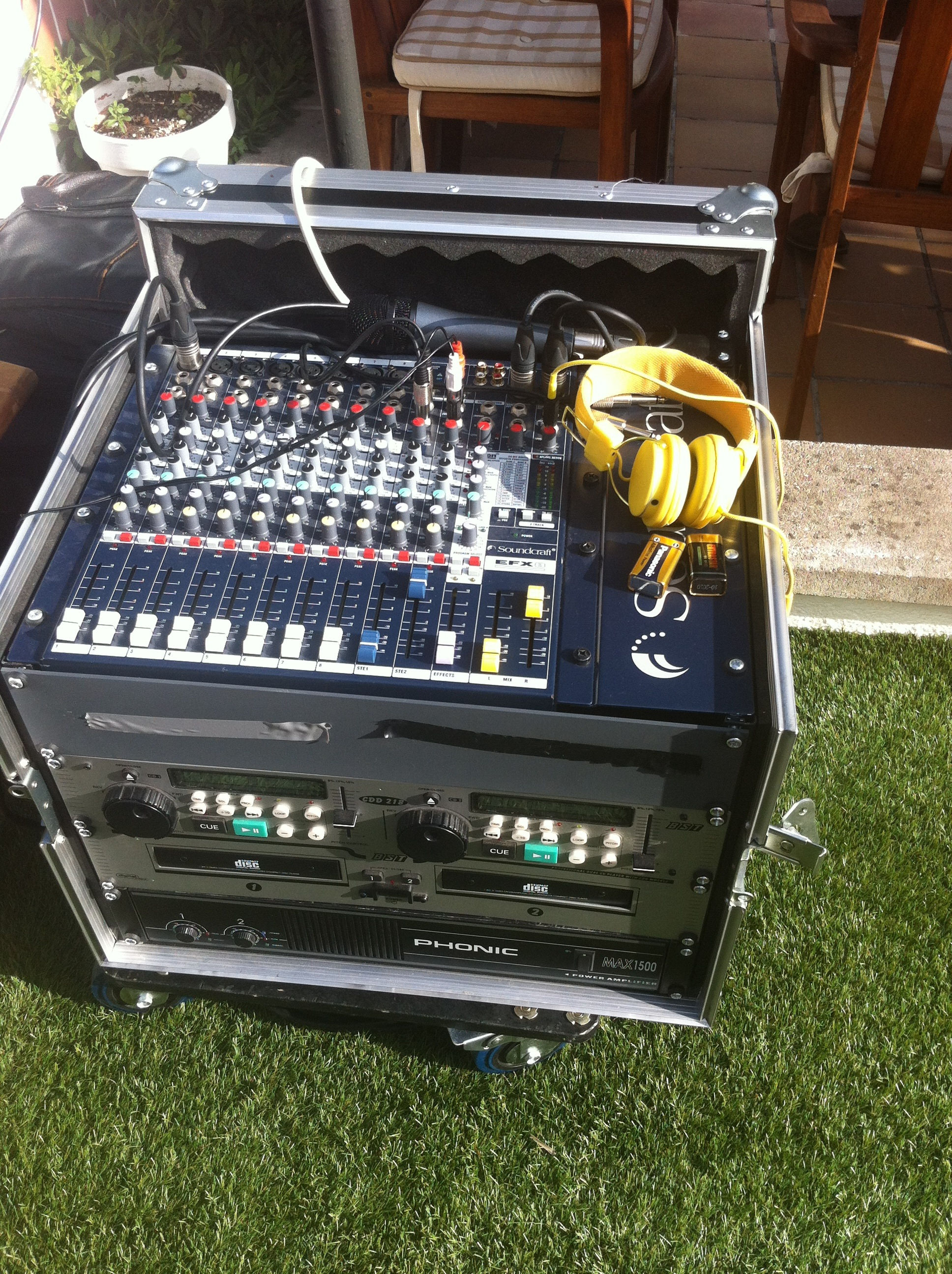 1800w, 4 cajas altavoces, luces, máquina de humo, proyecciones